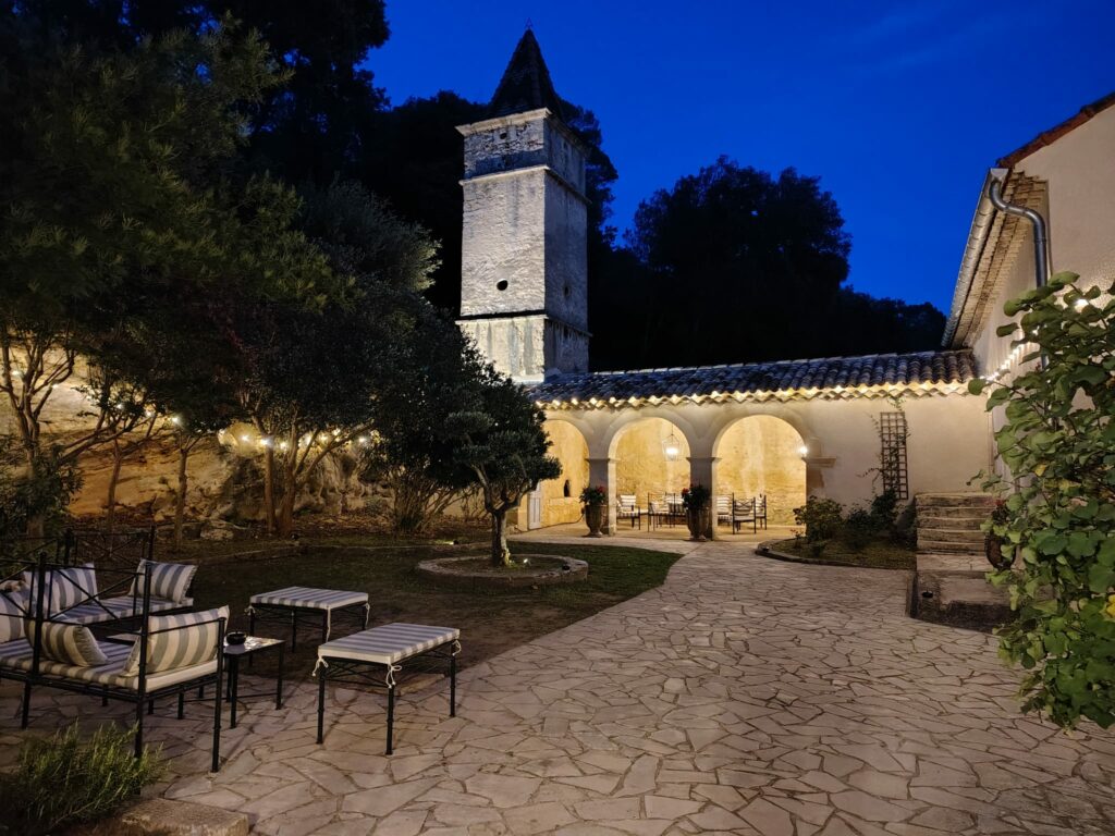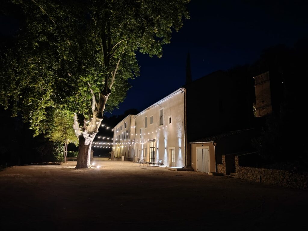 La terrasse de l’ancien pigeonnier est le lieu emblématique du domaine. Entourée des roches de la forêt, cette grande terrasse offre un espace intimiste remarquable avec son olivier central, son abri vouté et son ancien pigeonnier aux tuiles vernissées. Un lieu remarquable pour accueillir vos convives, qui donne aussi vue sur le vignoble du domaine, idéal pour un cocktail, un apéritif ou encore la partie brunch de votre évènement. Capacité : Environ 100 personnes